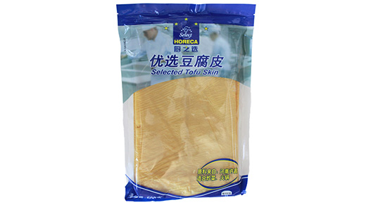 豆腐皮是中國傳統(tǒng)豆制品將新鮮大豆浸泡后,磨漿,濾去豆腐渣,這時(shí)的產(chǎn)品就是豆?jié){,然后煮豆?jié){,在其表面會凝固的一層高蛋白質(zhì)含量的薄膜(皮),這層皮就是腐皮。用工具挑起薄膜后掛起,最先挑起的一層皮以片狀鮮吃或曬干,稱為腐皮,口感最滑。